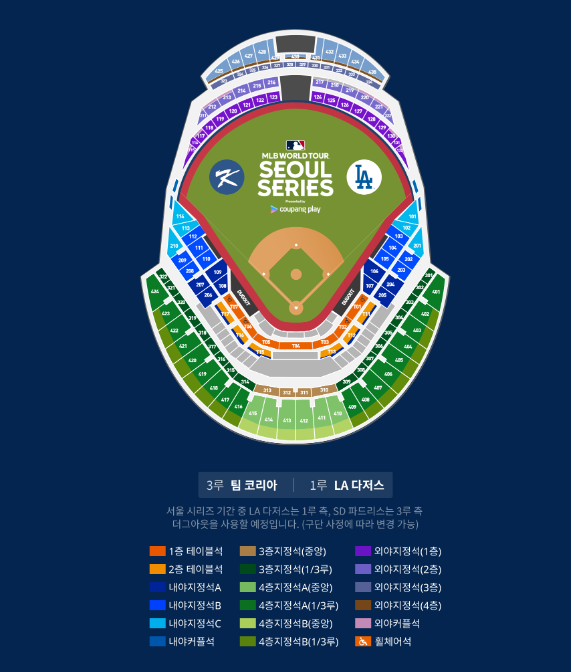 MLB 월드투어 서울시리즈 2024 팀코리아 vs la 다저스 경기가 3월 18일(월) 오후 7시에 열립니다. 세계적인 슈퍼스타 오타니와 팀코리아가 맞붙을 다시 없을 이 경기를 직관하고 싶으신 분들이 많을텐데요. 좌석별 금액과 예매하는 방법 까지 알아보겠습니다.